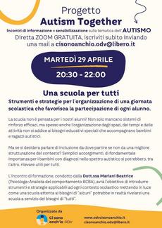 Evento in diretta ZOOM gratuito - iscriviti inviando una email a cisonoanchio.odv@libero.it